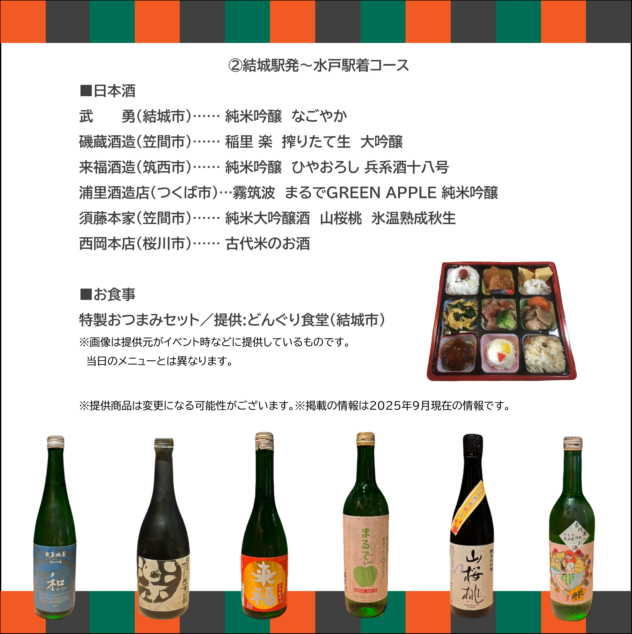 | 集合場所 | ①水戸駅みどりの窓口前 ②結城駅改札前 |