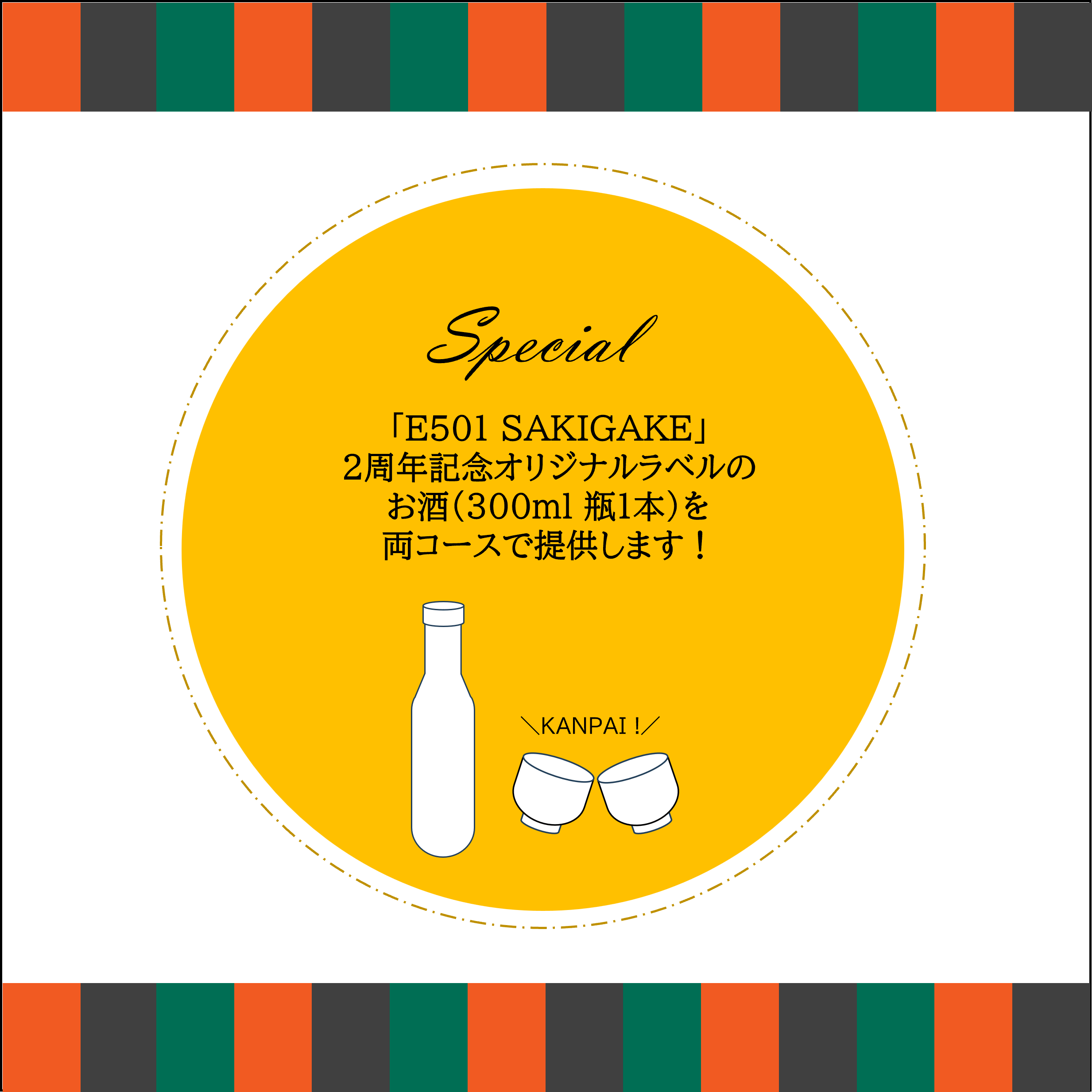 | プラン名 | 蔵元とっておきの一杯を飲み比べ!地酒列車「E501 SAKIGAKE -2nd Anniversary-」 |