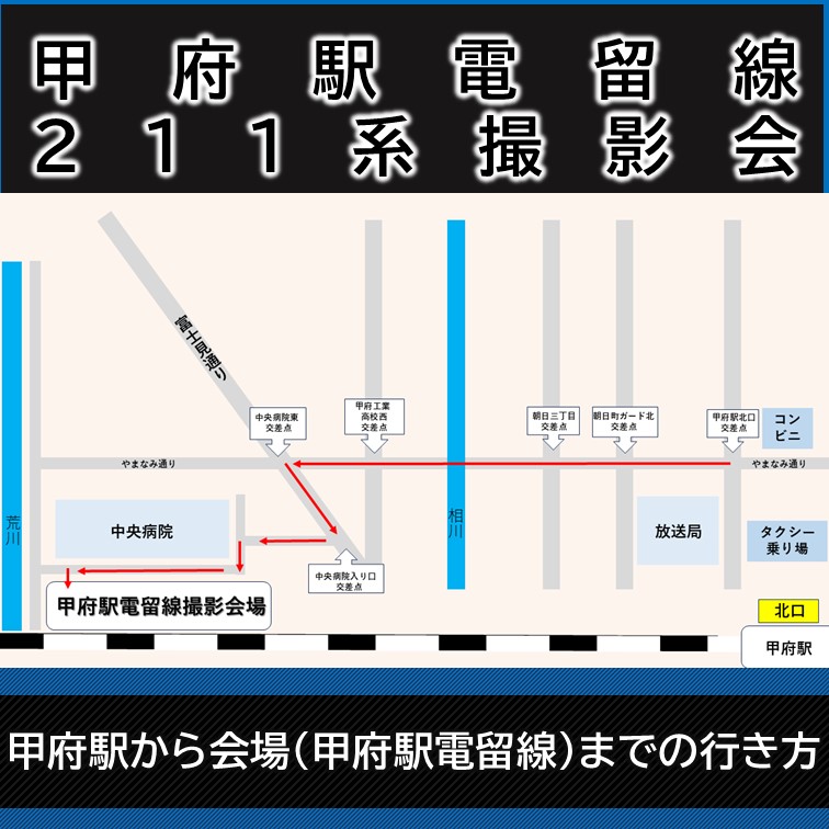 集合場所 | JR 東日本 甲府駅電留線北側門前(荒川付近)(山梨県甲府市) |