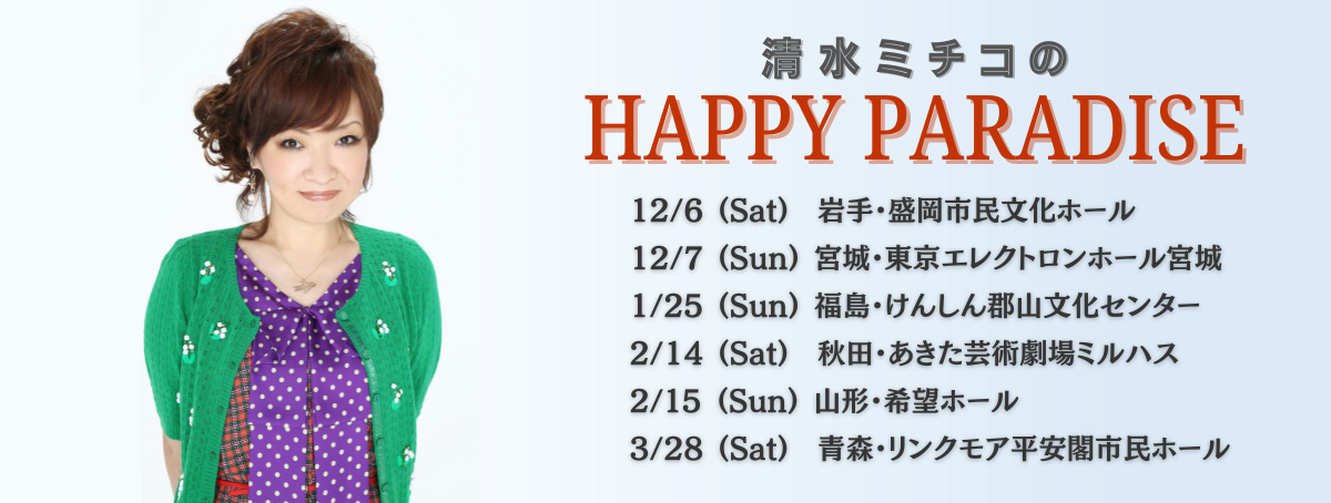 明るく楽しい時間になれるような気持ちでと名づけたライブツアー「清水ミチコのHAPPY PARADISE」の開催が決定!!